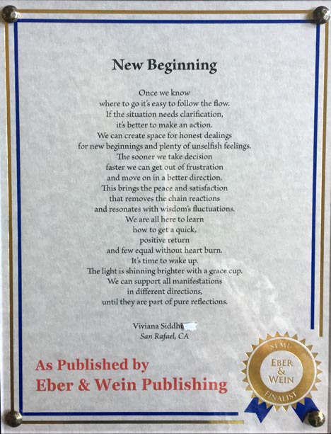 Viviana Siddhi's Pearls of Ancient Wisdom explores a basic truth: that the only constant in life is change. Writing poetry brings Viviana joy and is a way to go deeper into an experience and receive information that is transformational. Viviana has been selected and approved as a semi-finalist for International Publication by World Poetry Movement.