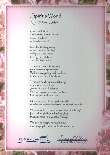 Viviana Siddhi's poems are like images. Think about a lotus. The material used for making the lotus has the image of the lotus, and it was covered with some other concept, but Viviana removed the cover and showed the image of the lotus to the world. - Yoga Master Baiju Muthunasan